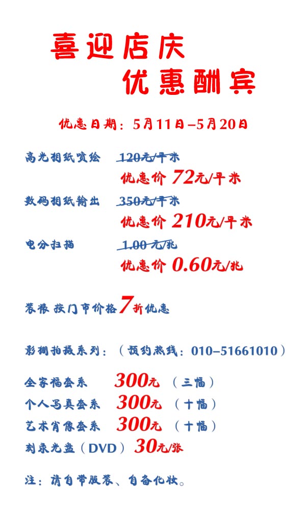 喜迎店庆-优惠大酬宾 2011-5-10